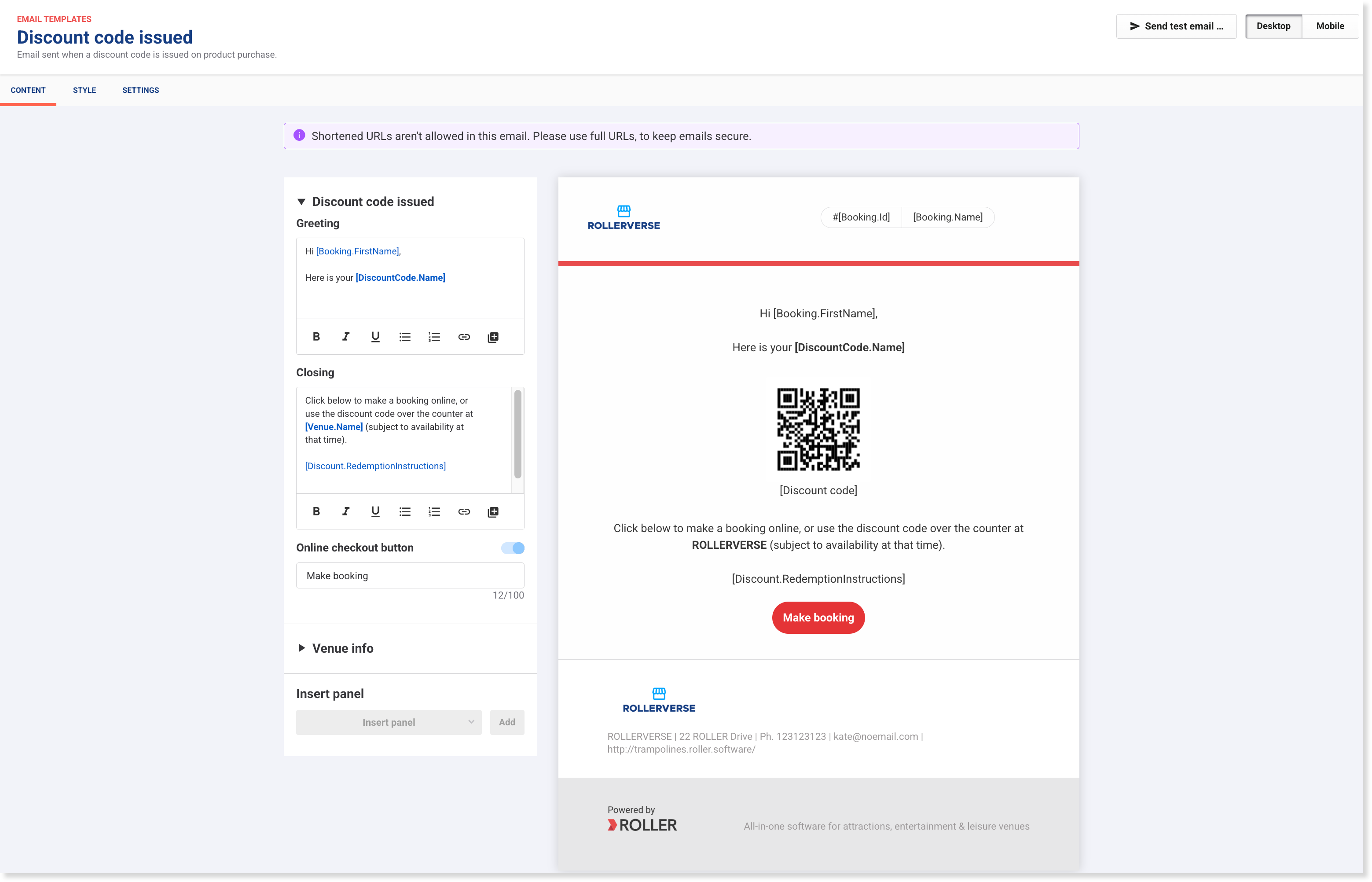 As of January 2026 release, you can customize this email template from Venue Manager. Go to Settings > Design > Email templates.