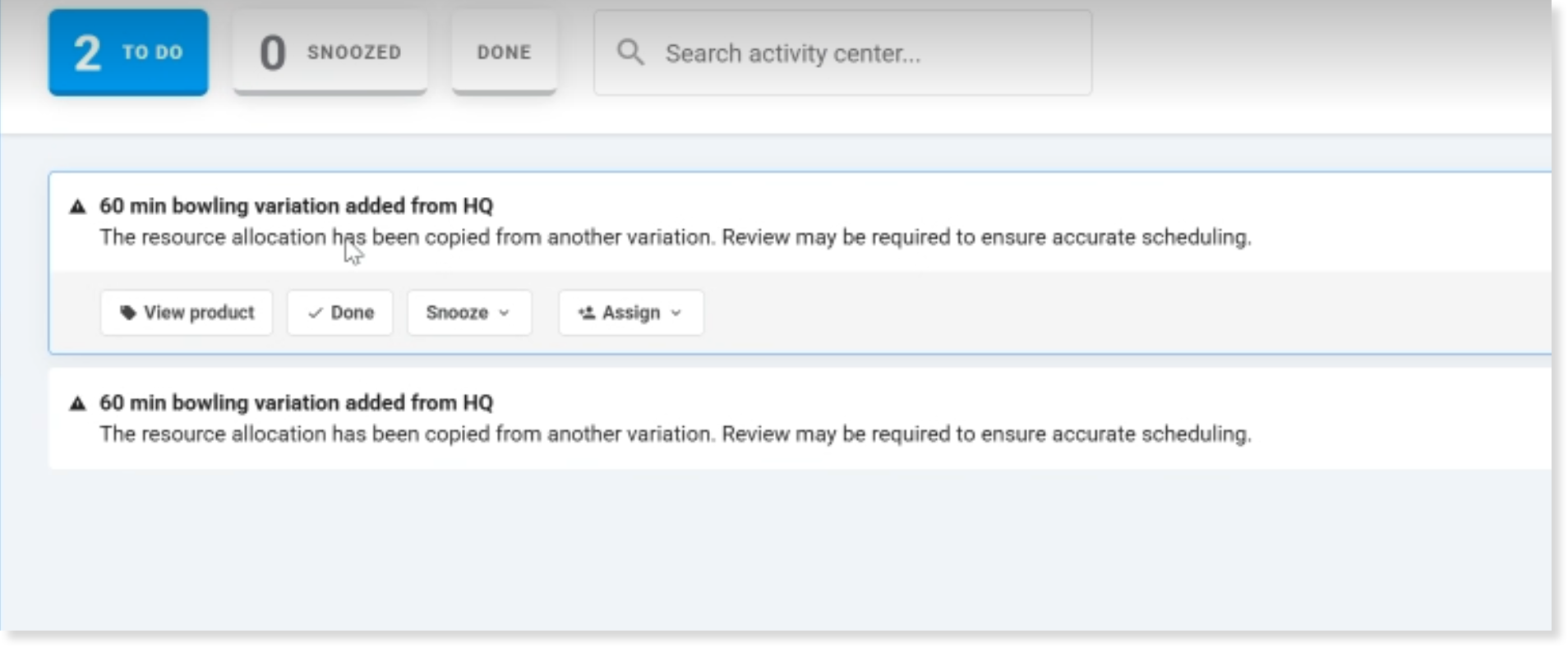 When HQ adds a new variation to a product and pushes it to your venue, ROLLER sends an Activity center notification to managed venues so they can review the variation before it is sold.