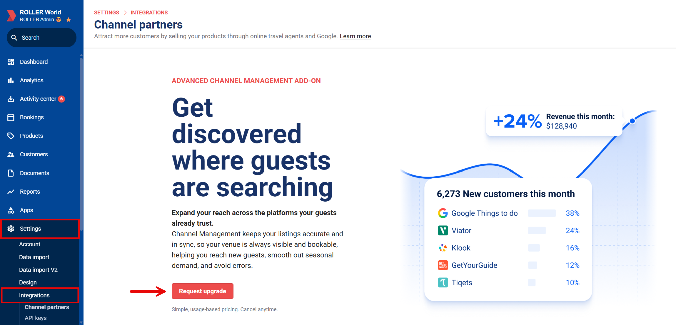 - In Venue Manager, go to Settings > Integrations > Channel Partners.