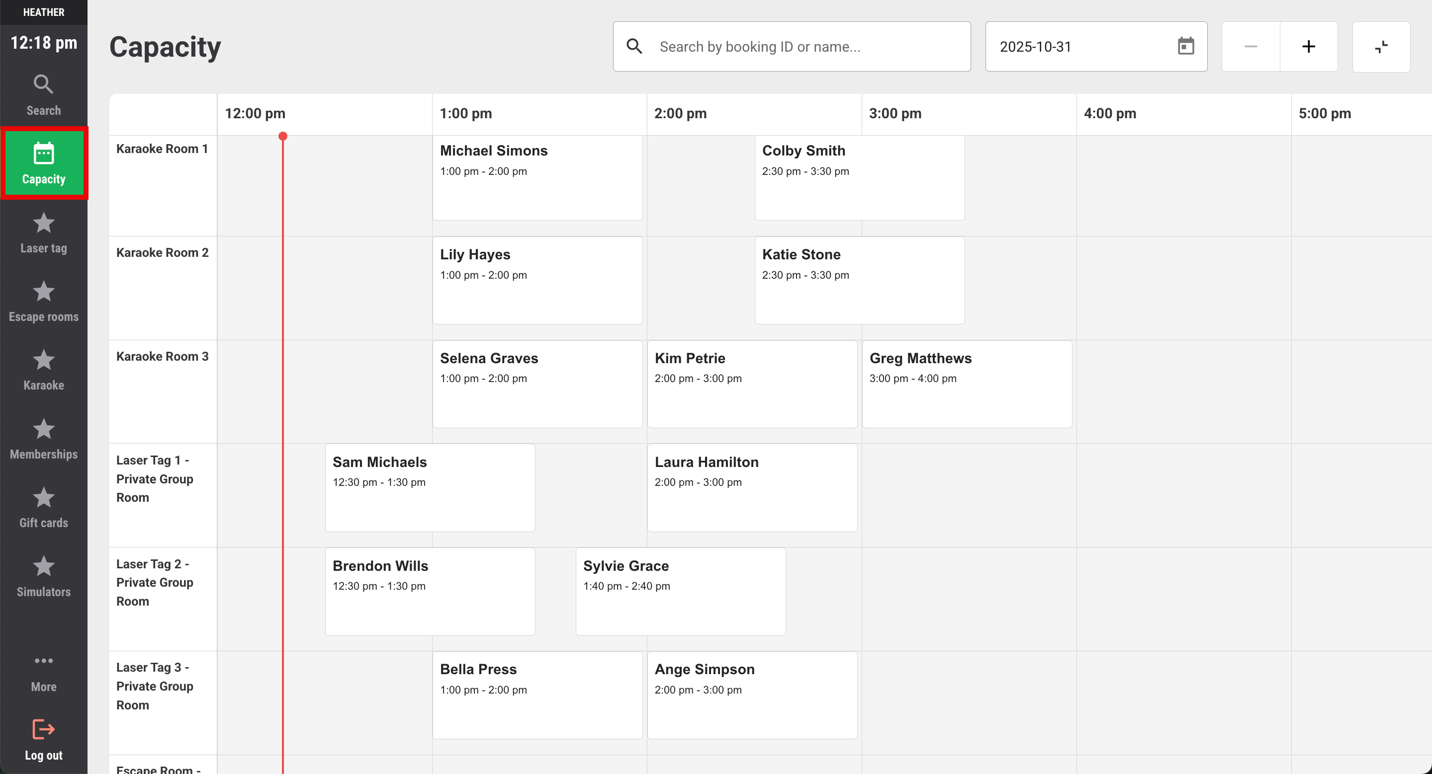 From the POS home screen, select Capacity. The view opens to the current day’s schedule.