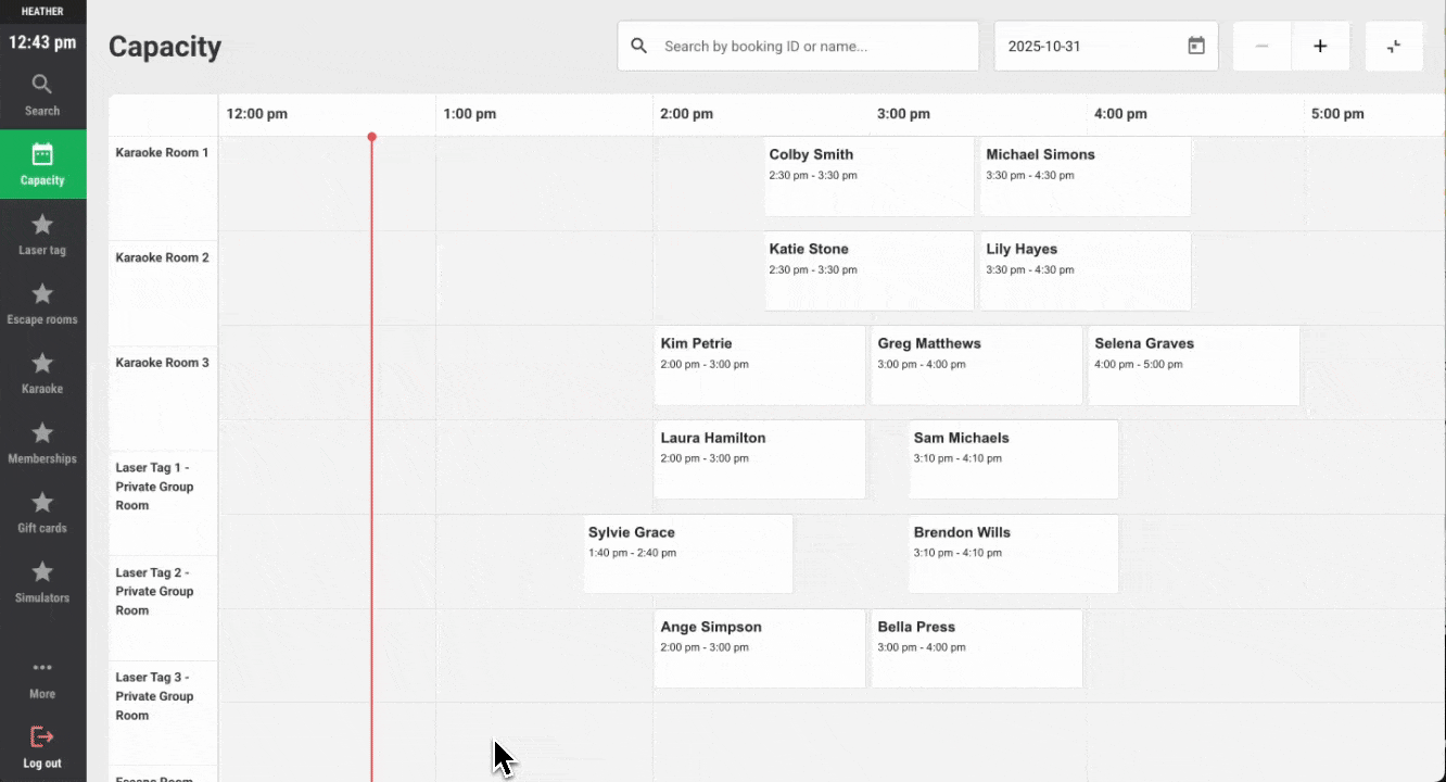 Open a booking from POS capacity view