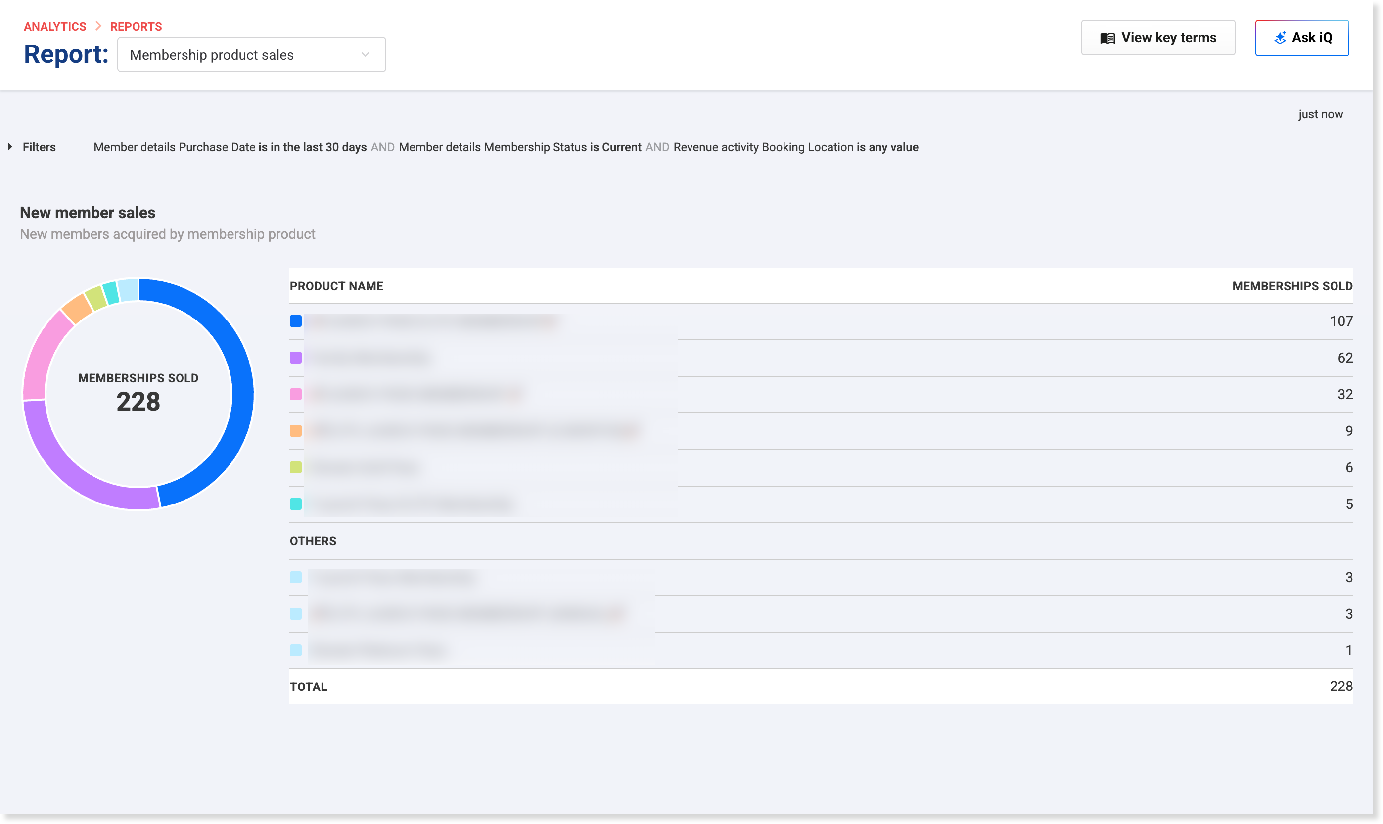 Track new member acquisitions by membership product over a selected timeframe to understand membership growth and sales performance. Use this report to see sales trends over time, compare product performance and identify when guests are most likely to sign up for a membership.